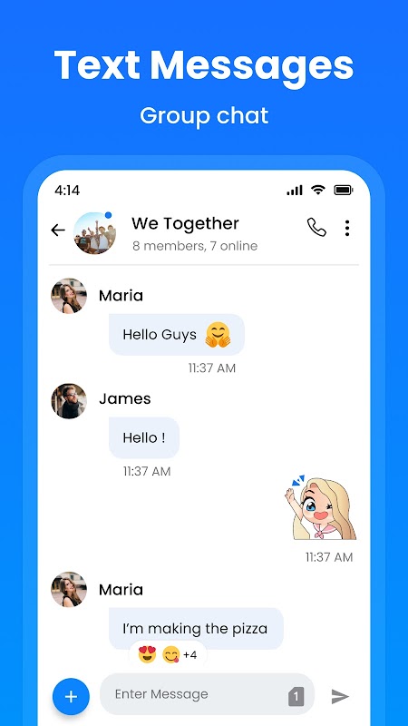 ✔ There is a great range of emojis, GIFs, stickers, and other awesome text message materials.