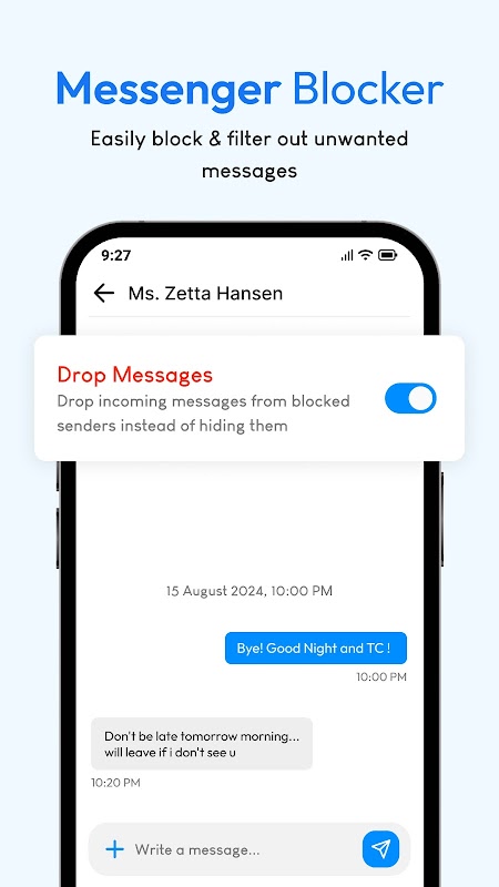 ✔ Block spam to keep unwanted chats away.