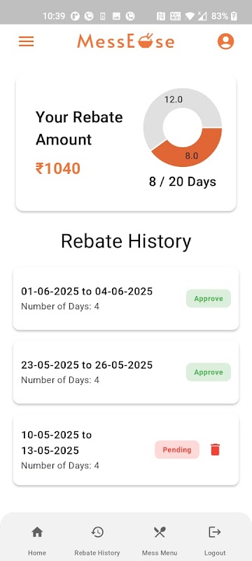 Make your college mess experience smoother than ever! Our app is designed to help you easily manage rebates, stay informed about mess updates and menus, and share your feedback-all in one convenient place.