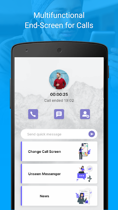 Choose your favorite phone call caller screen app and customize your call end screen to make it original and to see call summary. You can reverse lookup with one click from this useful call end screen.