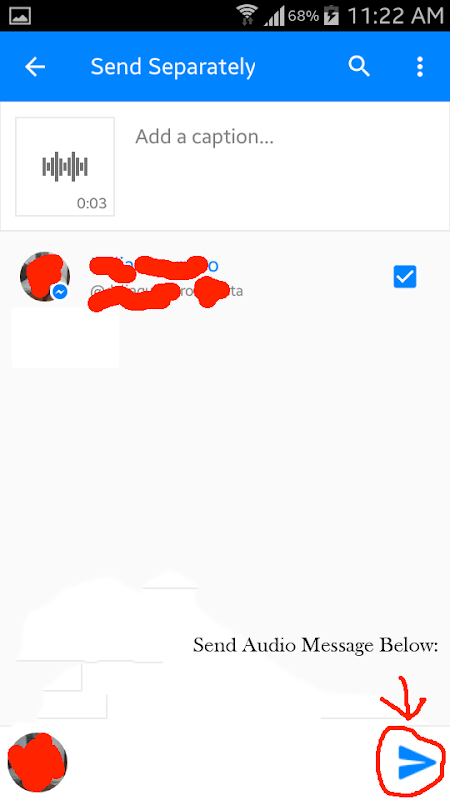 Facebook messenger built-in voice message feature is set to poor audio quality and has a one minute time limit. This app will allow to send audio messages in HD-Quality with unlimited record time based on the available free space on your built-in memory card. You are also able to send other multiple media such as: photos and videos in High Definition as well.
