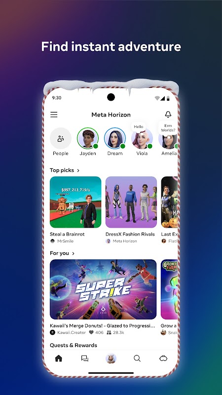 Meta Horizon on mobile makes it easy to play and connect with friends where and when you want.