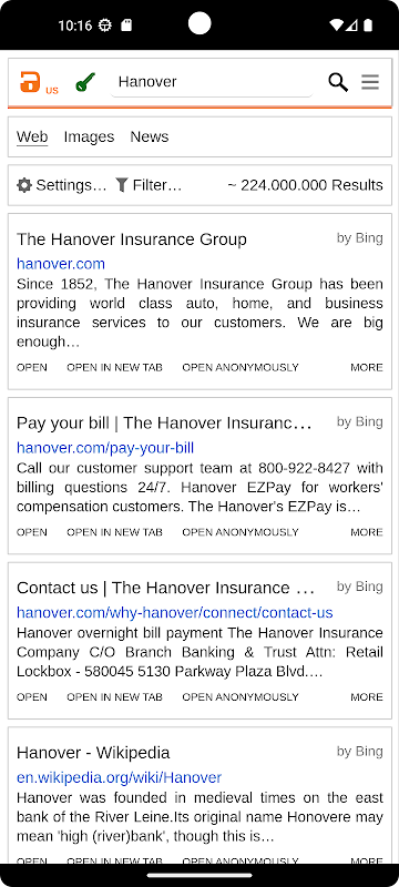 MetaGer.de is a German meta search engine with a focus on privacy and variety of results.