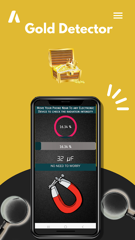 Do you know your phone has a built-in wall stud finder or Gold finder magnetic sensor to measure the magnetic field values? Use your phone for finding gold like a gold ring. Almost every gold tester app and metal detector app uses your device's magnetic sensor to measure magnetic field values and turns any Android into a real metal detector camera to find precious metal around you.