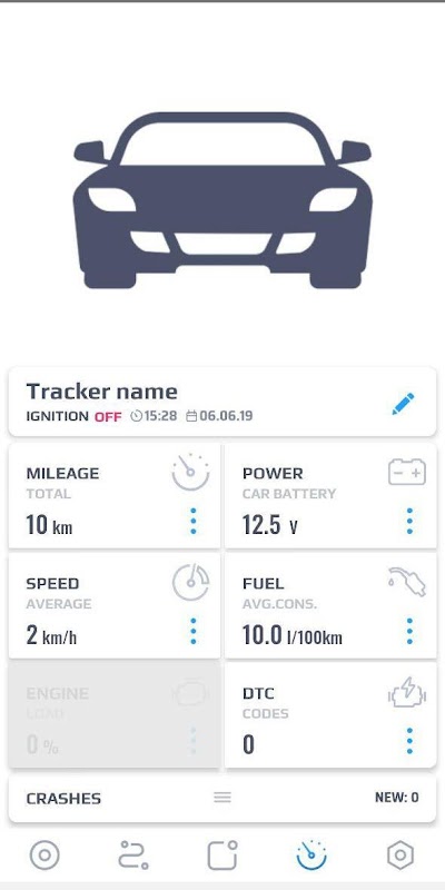 • Track your car in real time on the map, check statuses of Movement, Ignition and Car or Device Battery Level.