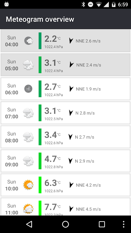 The main focus of the app consists in showing the meteogram on a small home screen widget (e.g. a 4X1 widget). Even while the widget does not occupy that much space on the home screen, it still manages showing the forecast in a clear way. Simply add a widget on your home screen, specify your location (or let the widget automatically determine your location) and the weather forecast appears on your home screen.