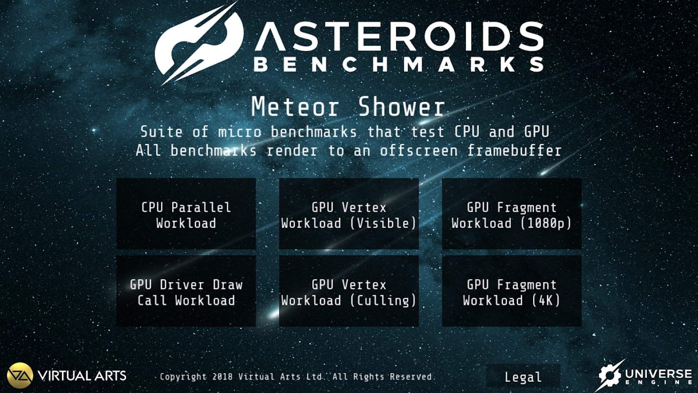 Meteor Shower is a suite of micro benchmarks that measure CPU and GPU performance.