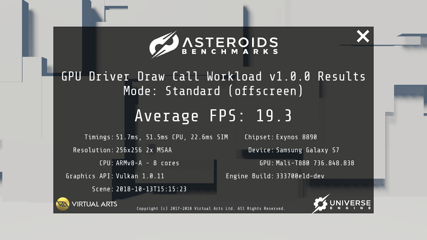 All devices are displayed in the order of performance on our website at asteroidsbenchmarks.com. You’ll be able to compare your device with the other devices ranked. See peak performance and spot performance drops during the timeline of the benchmark for any device. Understand which devices are at the top of their game!