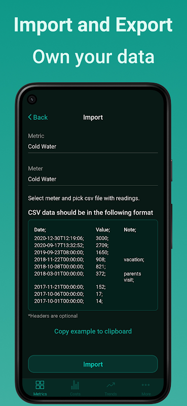 Meterable is the perfect app for anyone looking to easily track and manage their meter readings. With Meterable, you can quickly and easily record your consumption of electricity, water, gas, and heat. The app makes it easy to add and manage your meter readings, and provides a simple way to evaluate your consumption over time. Plus, with its clean and intuitive design, using Meterable is a breeze. Try it today and take control of your meter readings!