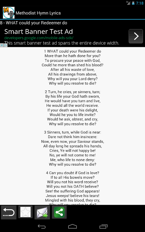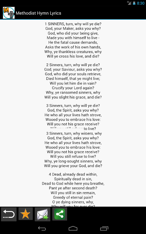Methodist Hymn Lyrics app is designed to enhance your worship service, and your devotion to the Lord by making available the Public domain version of the Wesleyan Methodist hymn lyrics, and other Methodist hymn books.