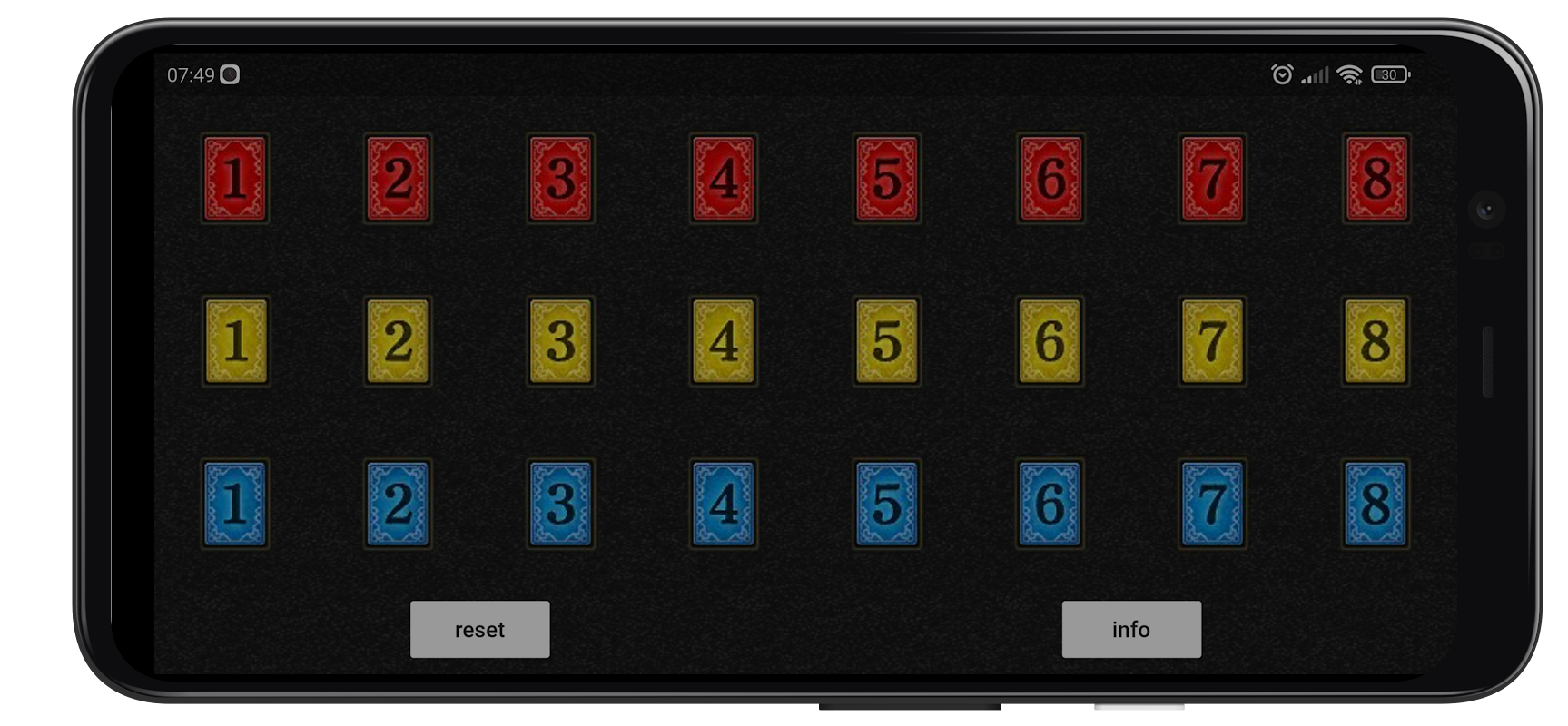 A set consists of three cards with the same number (e.g. 7, 7, 7).