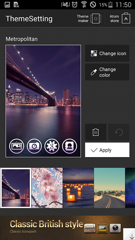 1. Incorporating photos in the gallery with Atom icons (Menu – Wallpapers - Apply)