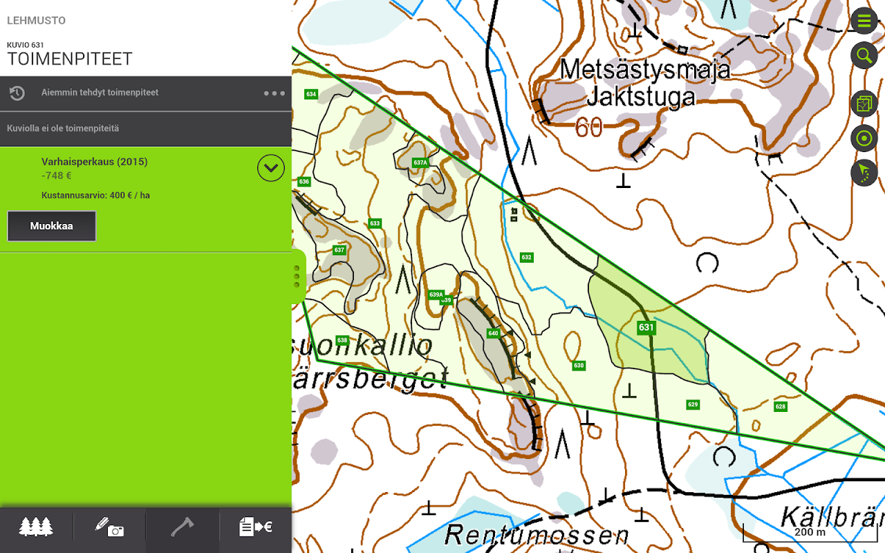 The app also works without a network connection. Changes in stand data and notes made with the app will be automatically updated in the Metsäverkko Internet service once the network is again available.