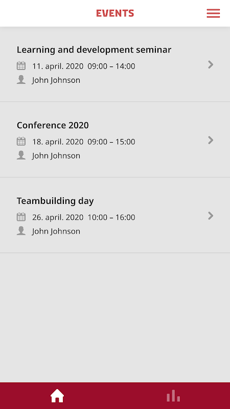 The participant app MFA Events for MFA specific events.