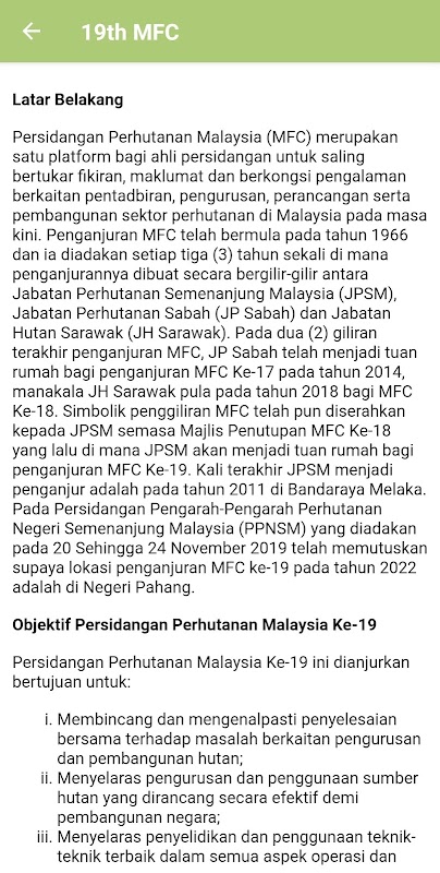 MFC2022@Pahang was prepared by Jabatan Perhutanan Negeri Pahang as co-organizer of 19th Malaysian Forestry Conference. It is a digital platform to organize and manage the conference which includes invitation, RSVP, registration, session tracking, push notifications and digital certificates.