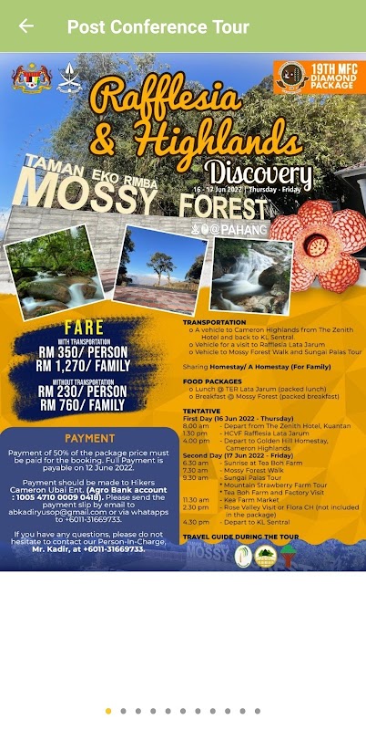 Only registered users who have done with RSVP can log in into this application. MFC2022@Pahang will provide info about 19th MFC such as agenda, list of presenters, presentation papers, bulletin, posters, post-conference tour packages and list of exhibitors.