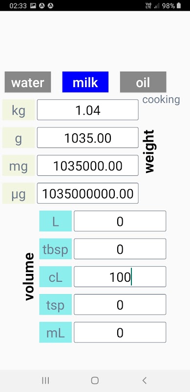 Easily calculate mg to mL and mL to mg.