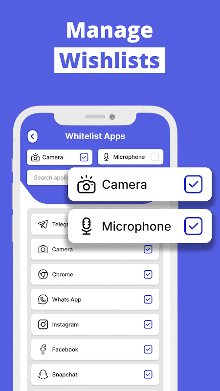 This application gives the individual app selection option to block either the camera or microphone. You can select the respective apps for which you want to disable the mic, camera, or both.