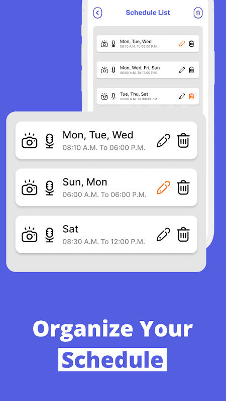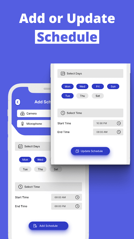 The schedule option is the key feature of this microphone and camera protection tool. You can schedule the time to protect your privacy by blocking the phone's microphone and camera access. You can choose to block access on a daily basis, for specific days, or for particular time periods. You can schedule the time as per your convenience.