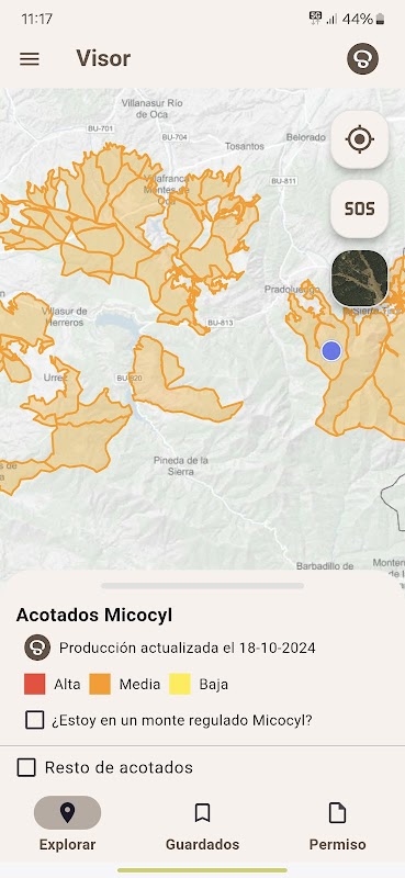 Micocyl app is a service for mushroom collectors in Castilla y León to fundamentally help them know at all times if they are in a forest regulated under this project. The application notifies the collector of a change in status thanks to GPS, and provides other useful services such as remembering the car's parking coordinates so that it can later be located, an SOS button that sends the coordinates in an SMS, weather forecast and lists of tourist services by proximity to the collector's point: specialized restaurants, mycological guides, project events, permit issuing points, etc.