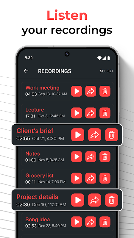 Microphone Recorder: Record and save conversations, lectures, or other sounds directly from the app.