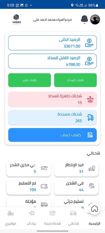 Through the customer interface, through the application, he can add shipments, follow up on his shipments, their status, the shipment’s itinerary, and follow up on his balances and accounts.