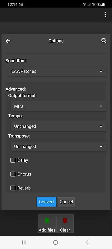 The MIDI Converter app converts MIDI audio files to MP3, M4A, and WAV files using high quality soundfonts.