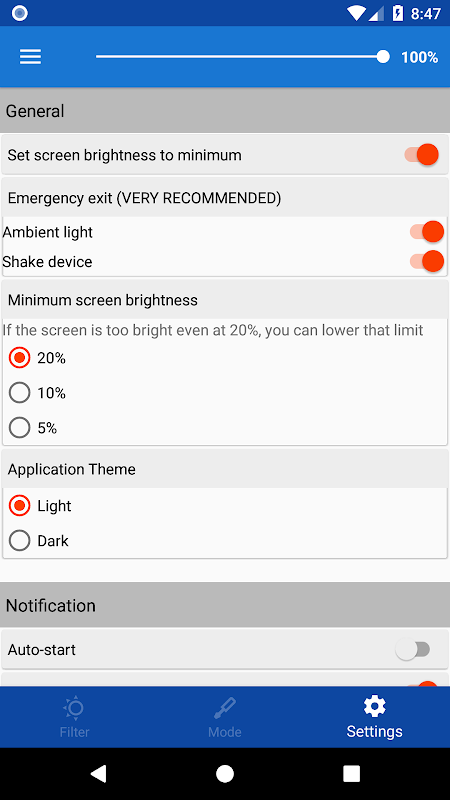 ✓ Automatic mode will start or stop the screen filter when the screen is turned on in dark places