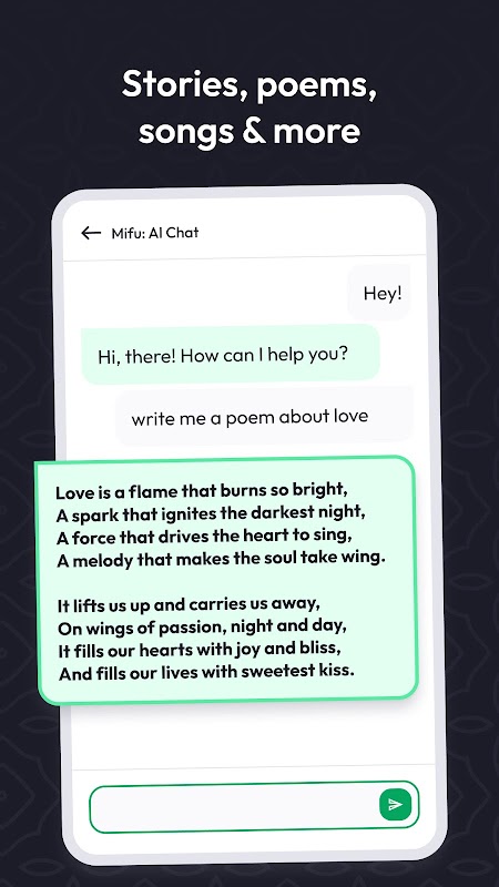 Say goodbye to writer's block and hello to a new level of productivity and creativity. Whether you're a student, professional, or just someone who loves to write, our app is designed to help you become a better writer and communicator. Mifu can help you write emails, essays, poems and even generate codes effortlessly. With Mifu AI's user-friendly interface, you can easily get started with your writing and let our genius AI bot take care of the rest.