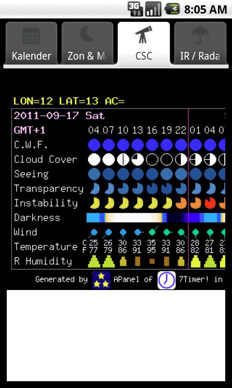 MijnHemel is meant for dutch and belgian users only and will not display the correct celestial information for devices in other countries.