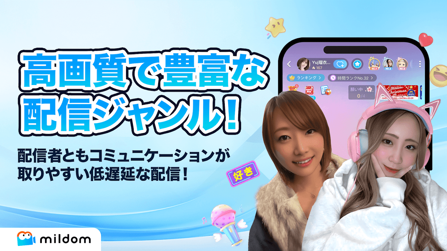 Mildom is a comprehensive live distribution service that can be easily distributed and viewed on smartphones and PCs.