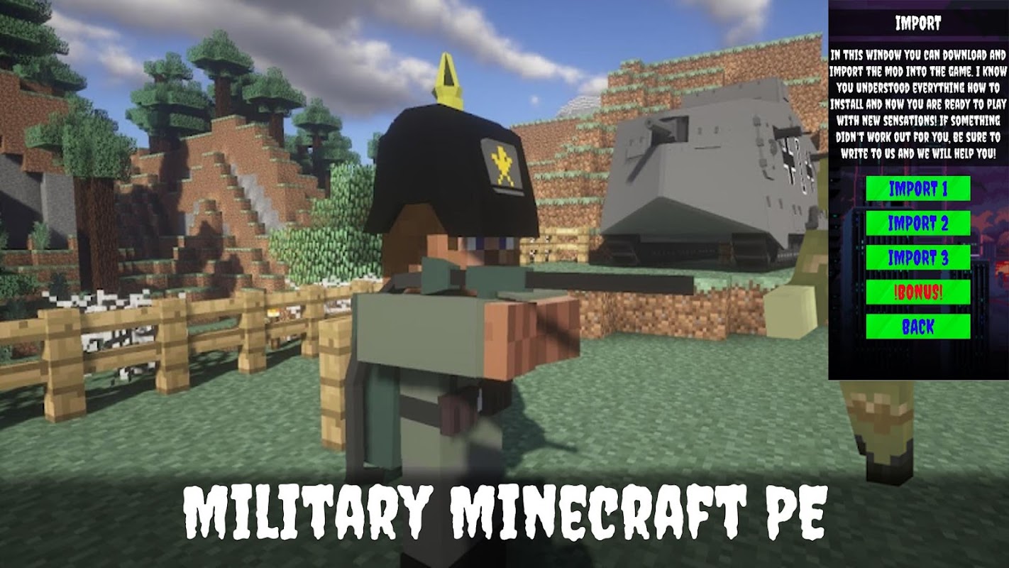 ✌ Giving joy Military mod for Minecraft PE 2022 can completely change your pastime in MCPE and make all other players marvel at your mods. Military mod for Minecraft PE is a modern addon with high-quality textures and a simple interface that will not leave anyone indifferent!