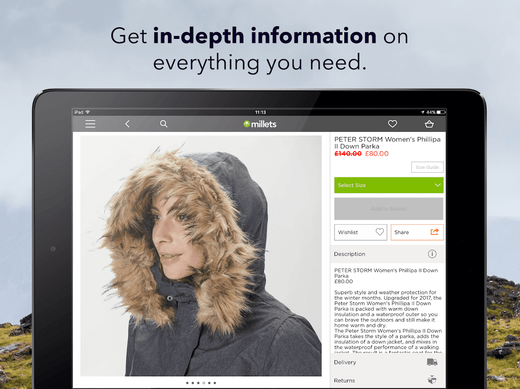 Welcome to the official app of Millets the outdoor store. Here you can browse our huge range of outdoor clothing, footwear, tents and camping gear while on the move, as well as placing orders, receiving unique offers, and finding your nearest store.