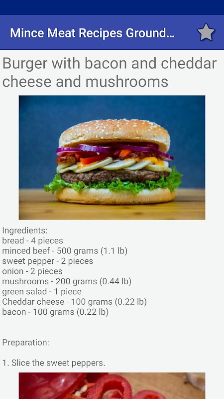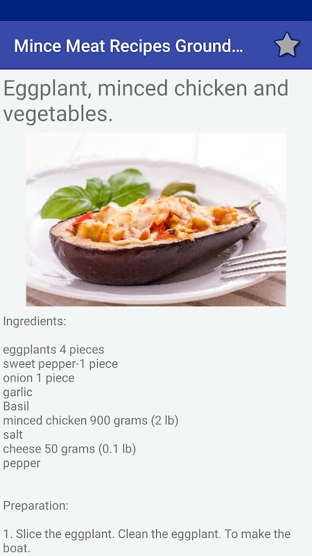 Many step-by-step recipes with pics of minced meat in one app!