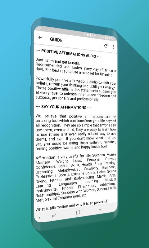 Affirmation is very useful for Life Success, Money Mastery, Weight Loss, Personal Growth, Confidence, Social Skills, Health, Brain Training, Dreaming, Metaphysical, Creativity, Business, Professions, Sports, Extreme Sports, Poker, Scuba Diving, Fitness and Bodybuilding, Martial Arts, Learning Languages, Learning Musical Instruments, Phobia Elimination, Addictions, Relationships, Success with Women, Success with Men, Sexual Enhancement, etc.