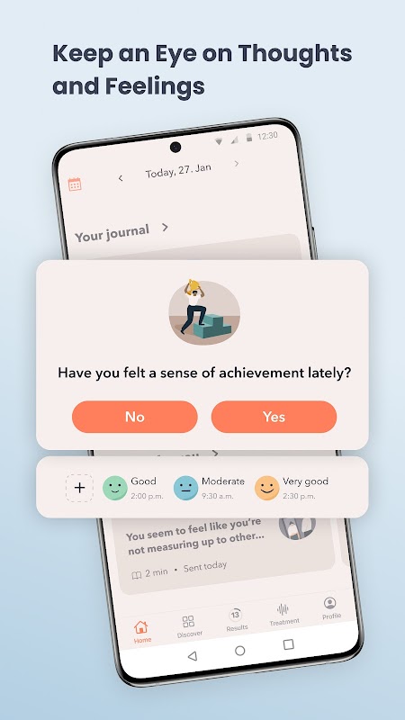 Utilize our intuitive mood tracking feature to monitor your emotional state and journal your thoughts, feelings, and experiences.