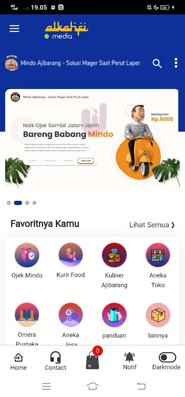 kami merupakan layanan aplikasi pesan antar, ojek online dan transportasi, semua mitra dan driver kami merupakan pihak ke 3 yang telah bekerjasama dengan kami secara resmi melalui aplikasi mindo ajibarang.