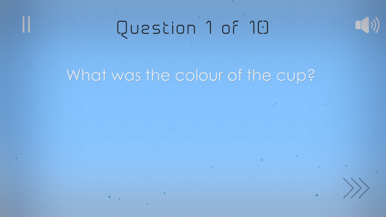 The aim of the game is to remember random and objects, and test your memory by answering a series of questions about the objects.