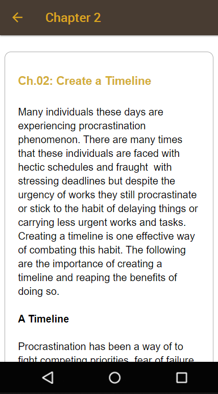 It is all about breaking up your goals and your tasks into smaller more manageable pieces. Once you are able to master this, you won't feel the need to keep putting things off and waiting until the last minute to accomplish your goals.