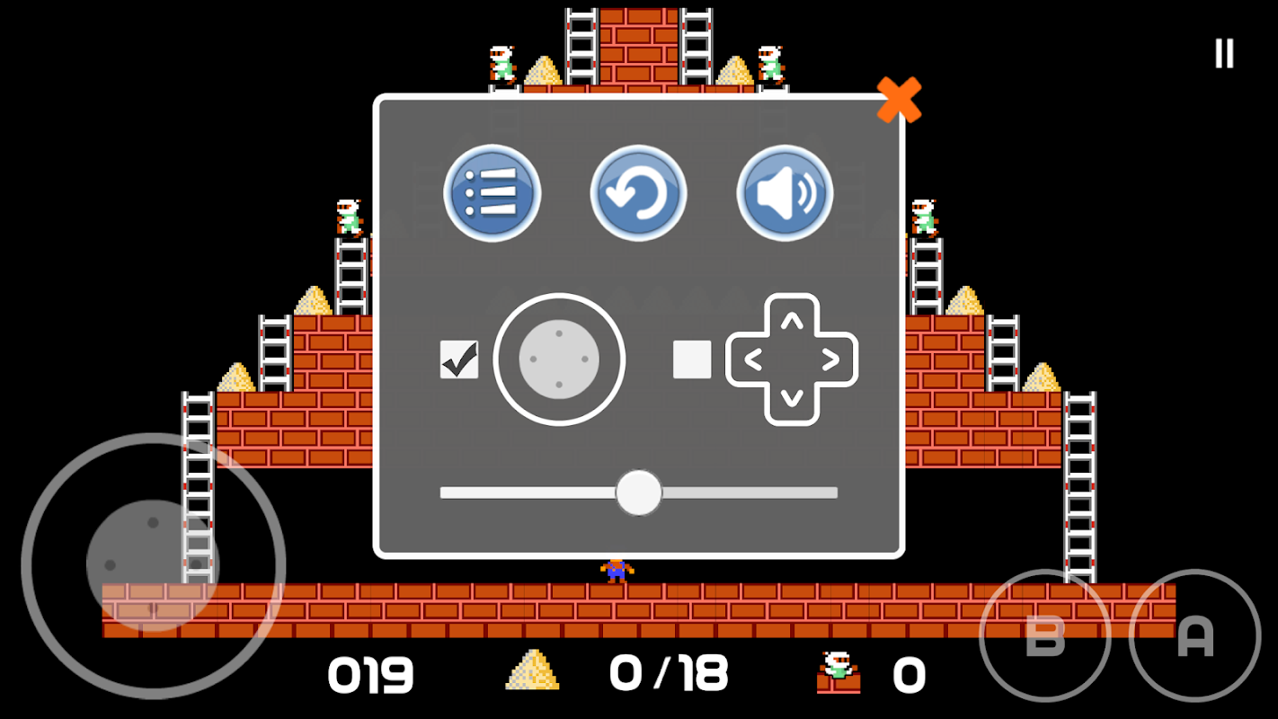 If a guard falls into a pit and gets stuck, it will become safe (for a moment) for you to run over him. He will release any gold he is carrying. Any holes that you've drilled will fill in again after a period of time, and guards caught in them when they refill will die and be replenished by new guards at the top of the screen. Guards can climb out to pits that do not close up around them. Your player cannot climb out of pits and will die if trapped in a pit that is only a single brick wide. Your player may also get caught in a situation with no way out and yet be alive. In this case you can only click pause—> reload to restart the level.