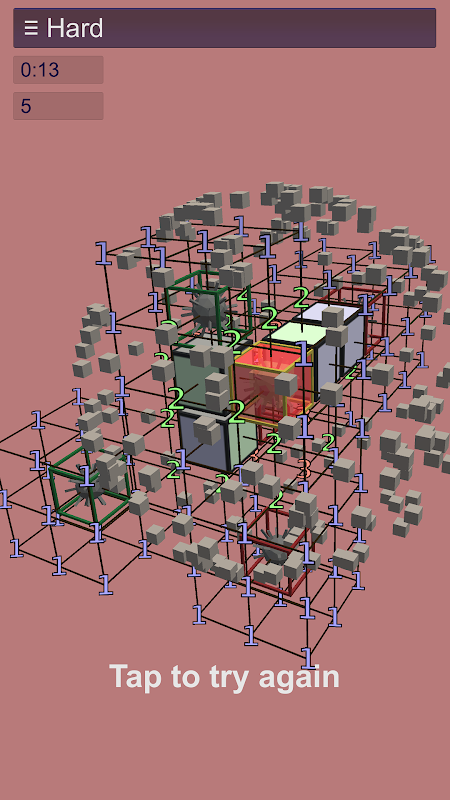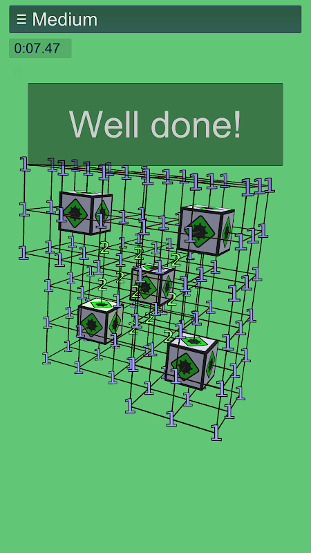 Numbers indicate number of mines in all ajacent cubes including diagonals