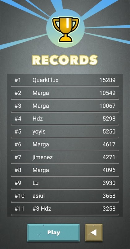 When we solve a board, the game gives us the option to enter our name or alias to add our brand to the game's record list. The scores are cumulative, therefore, the more games you play the more points you will get.