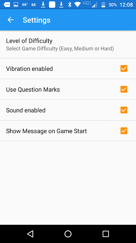There are 3 levels of difficulty: Easy, Medium and Hard.