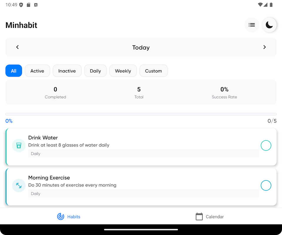 MinHabit helps you build better routines and stay consistent with a clean, modern interface.