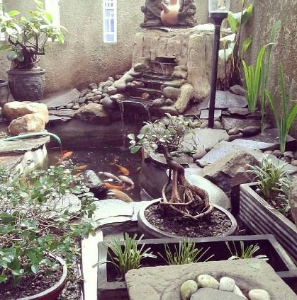 Deal with the narrowness of existing land around, also optimize the available space, many of us who have a hobby to keep ornamental fish want a pool enough, to just channel this hobby, tercetuslah idea to create a mini fish pond.