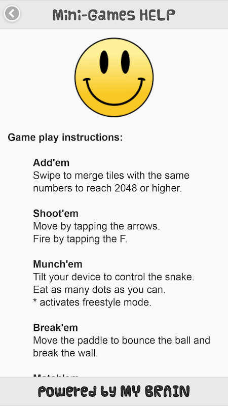 "Mini Games" a.k.a. "What happened to my time?" keep'em busy and play Match'em, Munch'em, Break'em and Add'em!