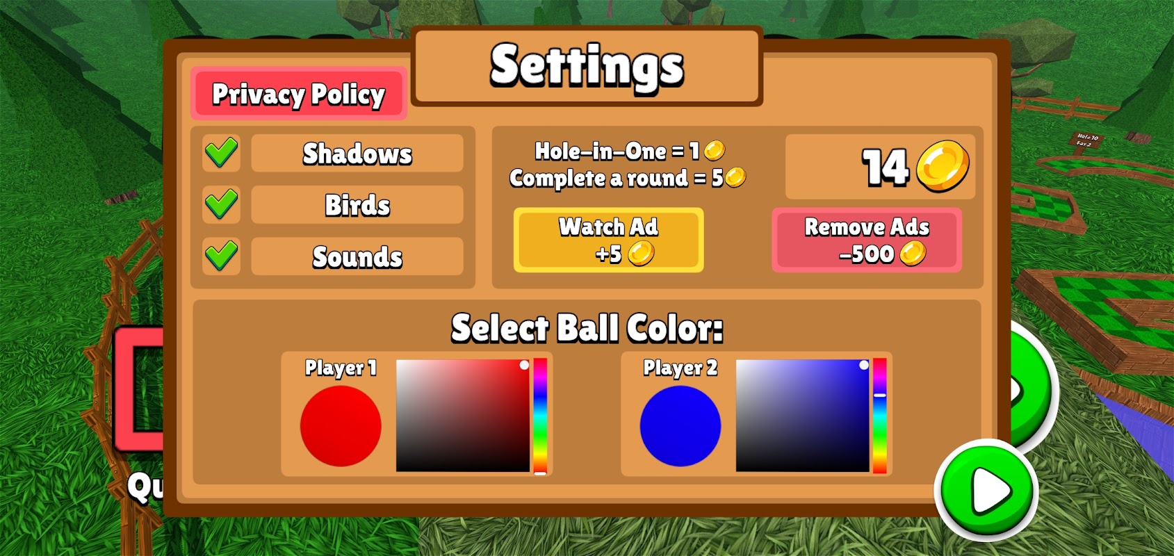 Mini Golf 3D Classic is a free mini golf game that includes six 18 hole courses with a simple to use interface and appealing graphics. Mini Golf 3D Classic features normal mode, where you can compare your high scores with people around the world and unlock achievements, and a practice mode where you can skip around the course and play any hole you like. You can earn coins by getting hole-in-ones and completing rounds, which can be spent on unlocking new ball colors, removing advertisements, and purchasing mulligans. There are also 3 different camera modes to cycle through including a behind-the-ball view, aerial view, and another view that gives you a preview of the hole. You can sign in to the Google Play Games Service to compete against friends on the global leader boards and earn achievements as well. The leader boards rank the best scores for the current day, week, and all time, as well as the total number of holes-in-one and rounds completed. If you enjoy mini golf, you'll love this relaxing, yet challenging mini golf game. See if you can set the high score and become the mini golf champion!