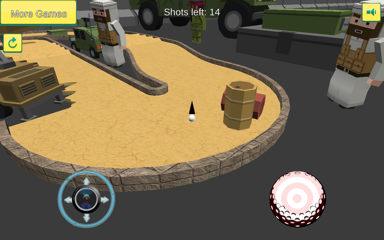 Welcome to the military world of mini golf. Can you pot all the balls within par and escape a telling off from the sargent. This awesome sports game has a unique setting. A cartoon military base, set in the desert. If you love, military, tanks and just the army in general. it’s the perfect setting for you to have a game of mini putt.