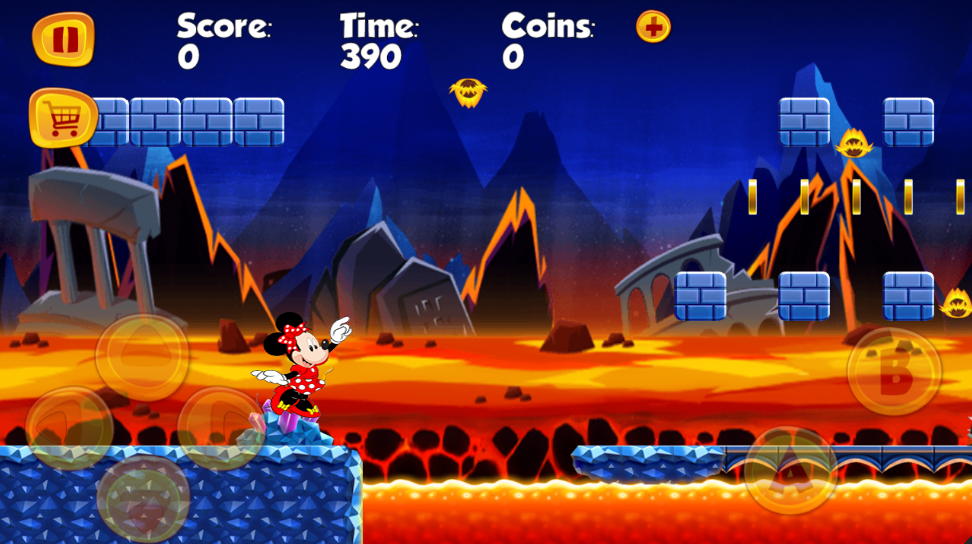 This Jungle run mickey the mouse and minie Game is a Free adventure Game the concept try to help mickey the mouse ,in collecting coins and jump from