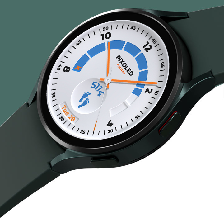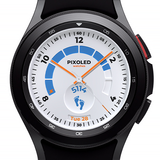 Enhance your Wear OS experience with the modern-looking dial with a 3D effect. A realistic analog watch face with date, battery percentage, step counts, hour, minute, and second complications to display some useful information.